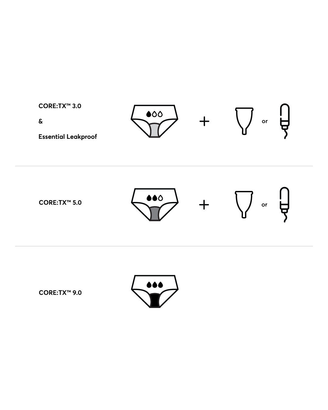 CORE:TX™ 3.0 & Essential Leakproof | Light Absorbency